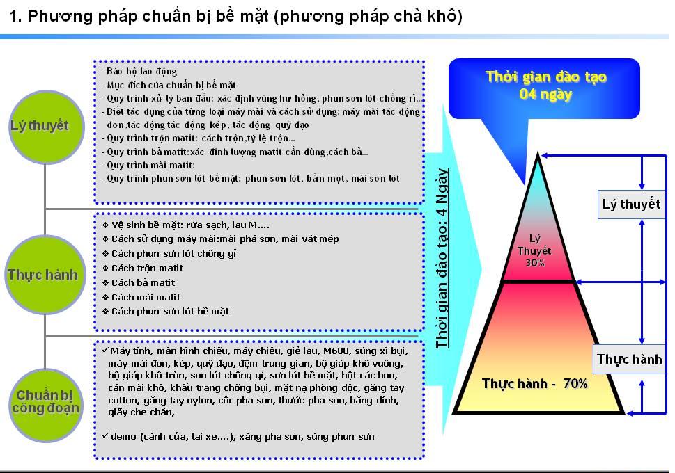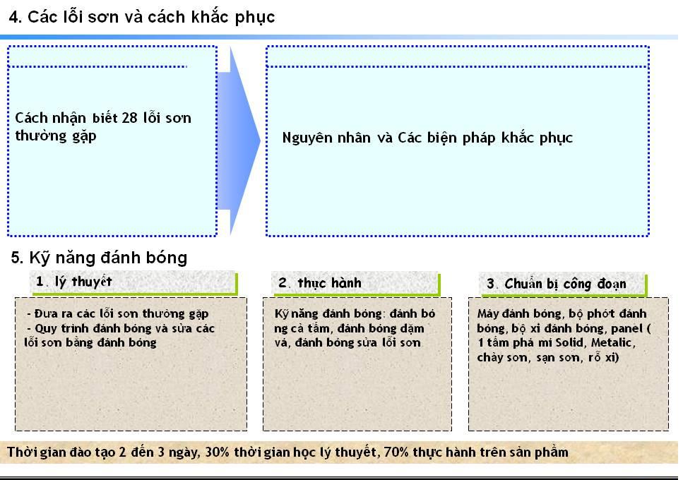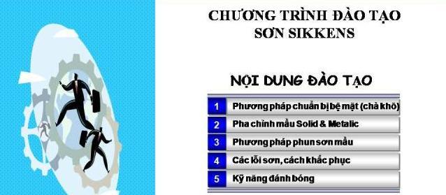 Nội dung đào tạo cho khách hàng sử dụng sơn Sikkens Công ty TNHH MTV thương mại và dịch vụ tổng hợp Tín Phát xin giới thiệu chương trình đào tạo và hỗ trợ khách hàng sử dụng sơn sửa ô tô Sikkens của Tập đoàn AkzoNobel, chương trình này sẽ do các kỹ thuật viên của nhà phân phối kết hợp với kỹ thuật viên của Hãng sơn tiến hành thực hiện: