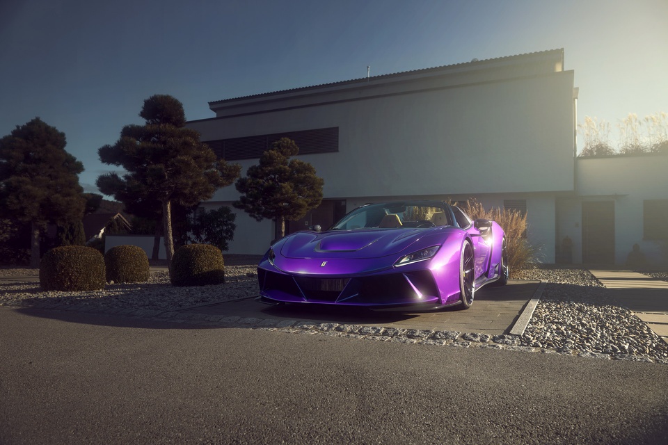 So với F8 Spider tiêu chuẩn, bề ngang thân xe phía sau của N-Largo tăng thêm 130 mm, đạt mức 2.108 mm.